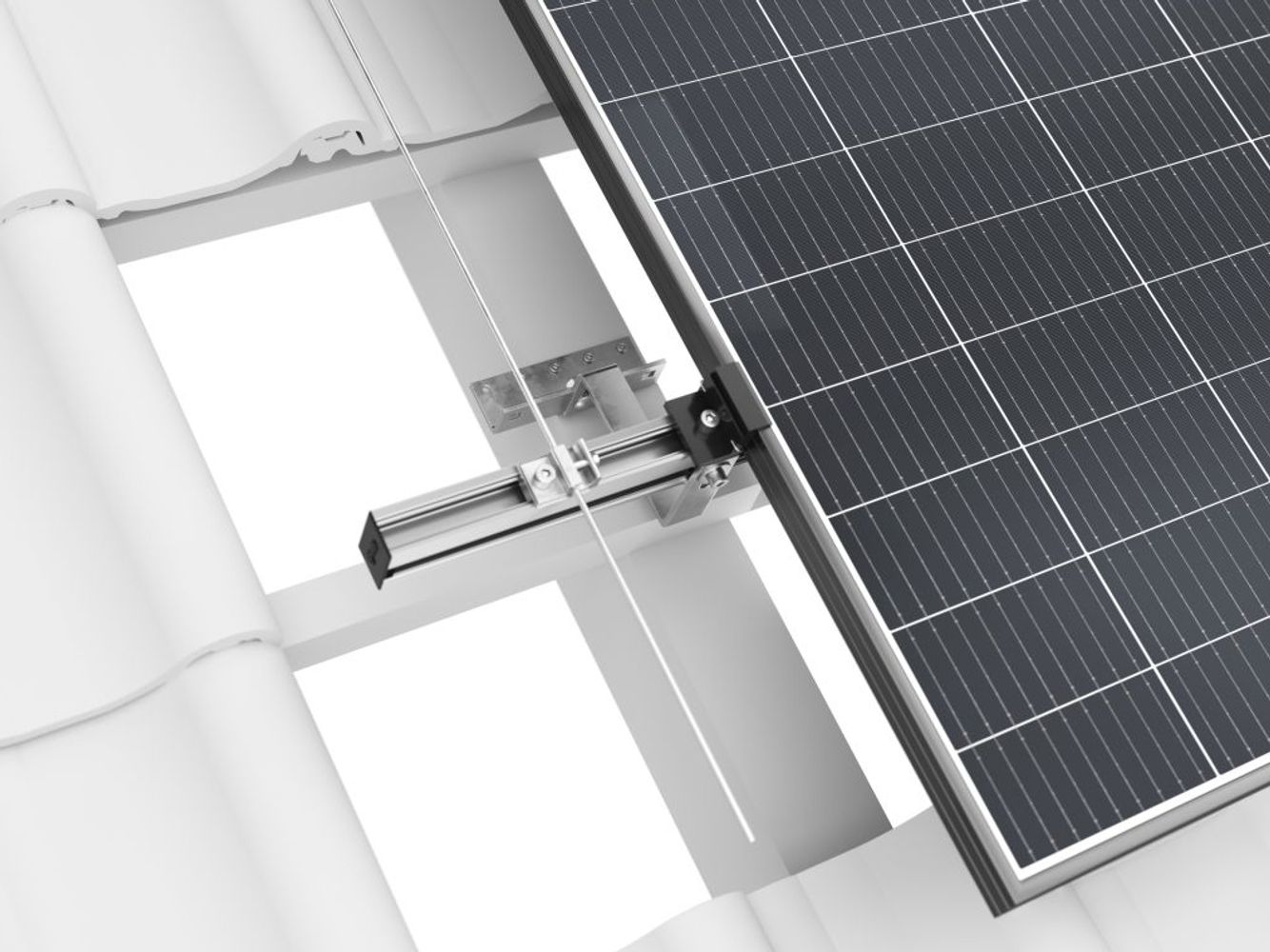 Corab D-01 system is a construction dedicated for ceramic tiles. Durable and stable bracket is mounted to the rafters. Made of high quality aluminum and stainless steel. Flexible modules mounting, both vertically and horizontally. The assembly is made easier by the adjustment of rafter holders.