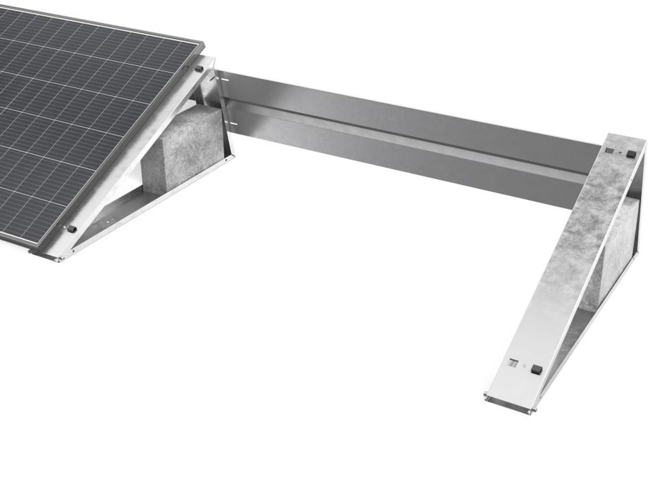 Corab PB-092 system is a solution that allows clamp free modules assembly in less than 30 seconds per module. The structure can be both ballast and invasive (attached to the roof surface). Dedicated to south oriented installations. The module is mounted horizontally, and slope angle is 25 degrees. It is made entirely of Magnelis, which guarantees high anti-corrosion resistance. The modules are installed horizontally. The additional advantage is lower cost of the installation maintenance, due to lack of clamp connections.
