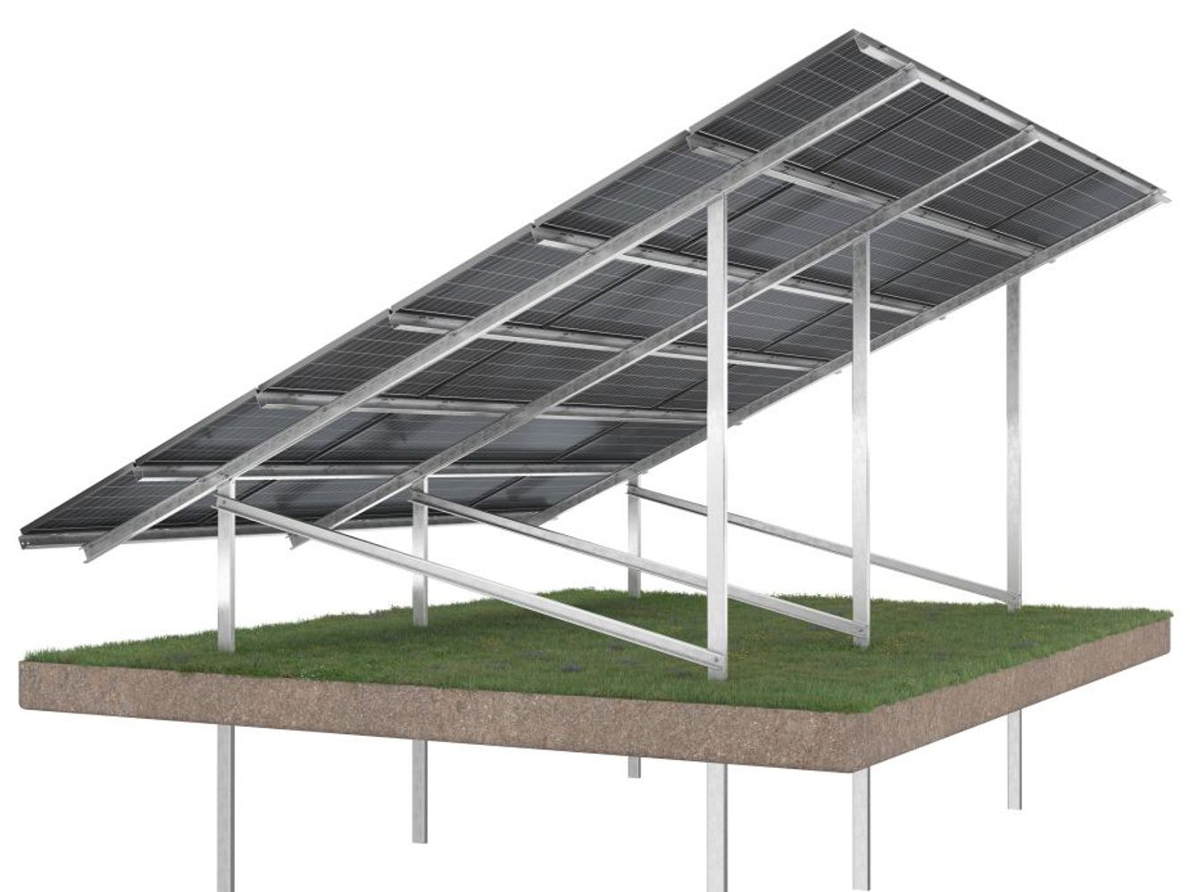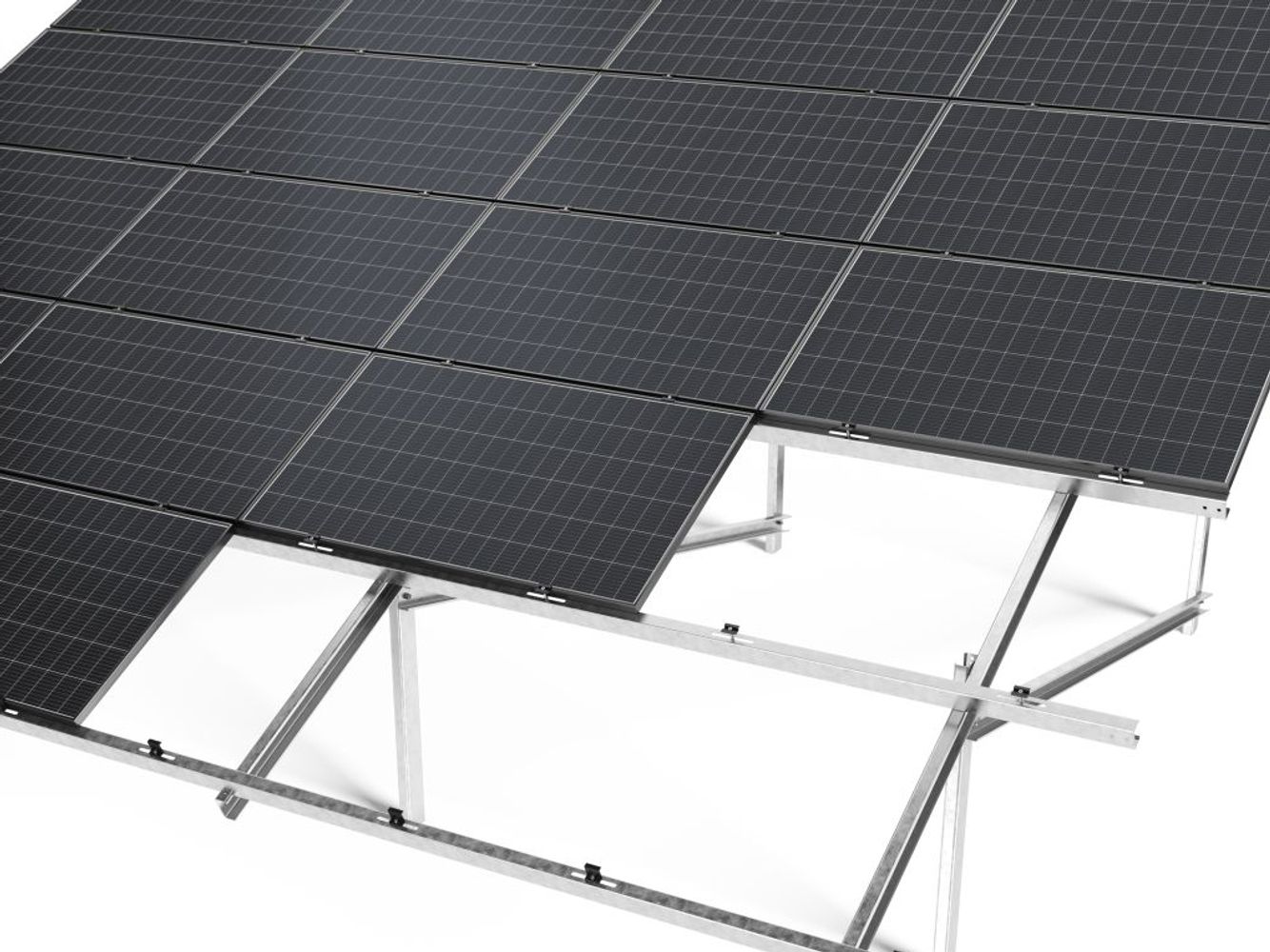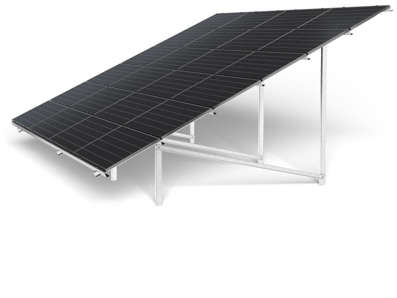 Corab WS-015 system is a double-support construction dedicated for large farm investments. Made of corrosion-resistant Magnelis allowing for up to 25 years' anti-corrosion coating warranty. The method of assembly is by winding it into the ground with a pile driver. The modules are arranged horizontally in 6 rows. Slope angle is 25 degrees.